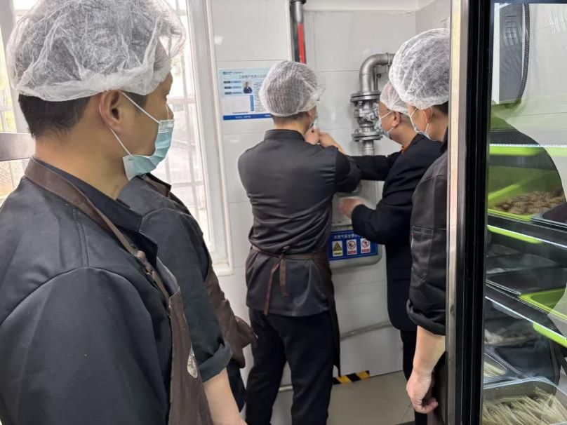 针对后厨燃气使用高频场景,演练设置燃气泄漏应急处置科目。模拟燃气报警器报警或闻到浓烈燃气味后,负责人迅速关闭燃气总阀,组织打开所有门窗强制通风,严格执行 “三严禁”—— 严禁开关电器、使用明火、拨打手机,避免二次危险。随后引导无关人员向上风方向疏散,在安全距离外设置警戒区,撤离后第一时间向燃气公司及上级报告,等待专业人员处置,流程规范高效。