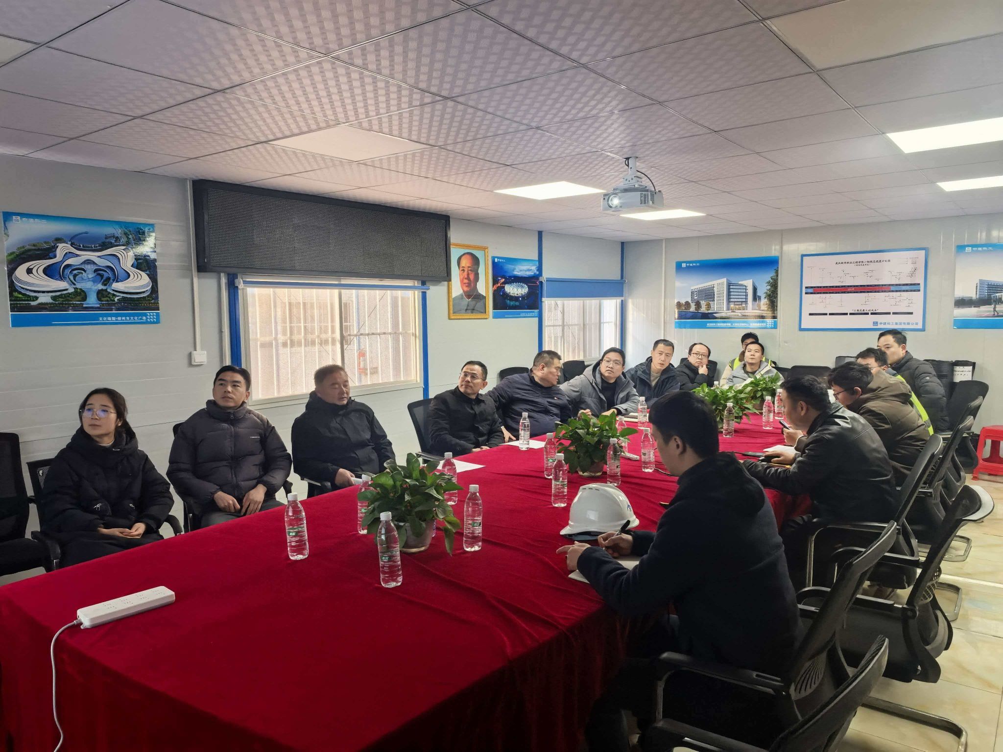 在现场座谈会上,视察组听取施工、设计单位关于装修方案的汇报,就装修风格与功能布局等问题与参建单位深入沟通,现场提出针对性指导意见。